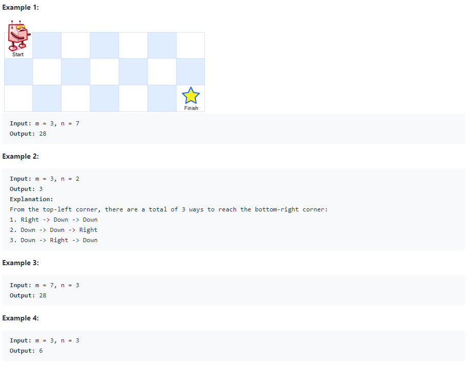 A robot is located at the top-left corner of a m x n grid (marked 'Start' in the diagram below).